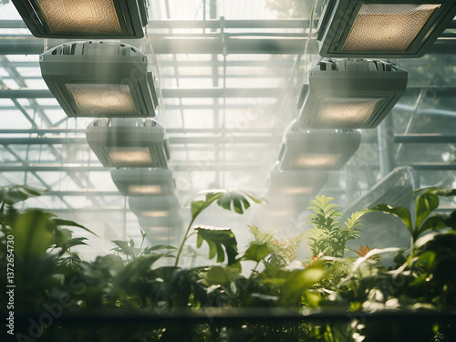 Greenhouse vents open to control temperature and humidity while diffused light spreads steadily