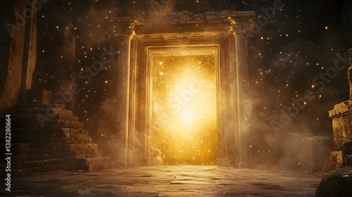 Ancient doorway glows with mystic light