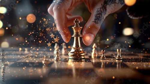 Strategic move in chess game intimate setting digital art contemporary close-up mindfulness and competition