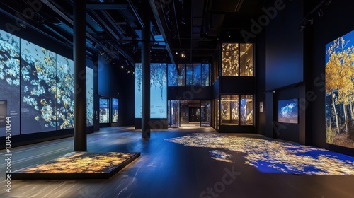 Modern museum exhibit showcasing nature through large-scale projections on walls and floor.