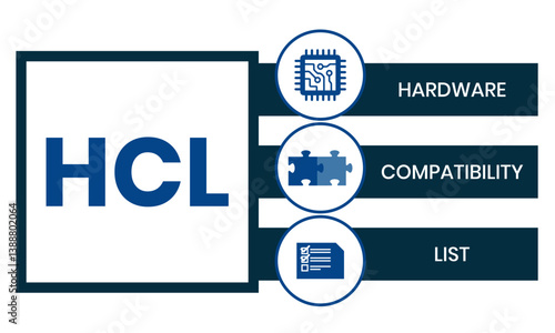 HCL - Hardware Compatibility List acronym. business concept background. vector illustration concept with keywords and icons. lettering illustration with icons for web banner, flyer, landing