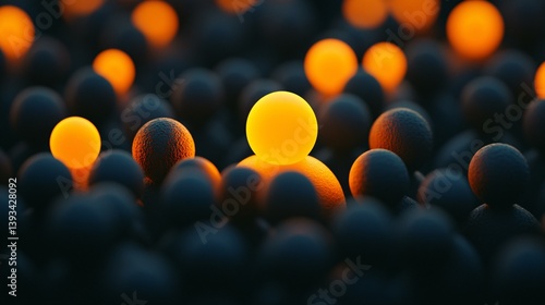 Small Round Orange Figures Pop Vibrantly Amongst Shadows