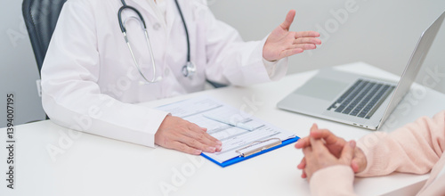 Doctor explaining diagnosis and treatment plan to elderly patient during hospital appointment. Senior patient talking doctor to disease. medical consulting, geriatric care, healthcare concept