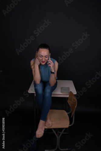 Frau Lehrerin am Handy