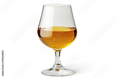 Glass of Amber Liquor on White Backdrop Offers Sophisticated Beverage Appeal