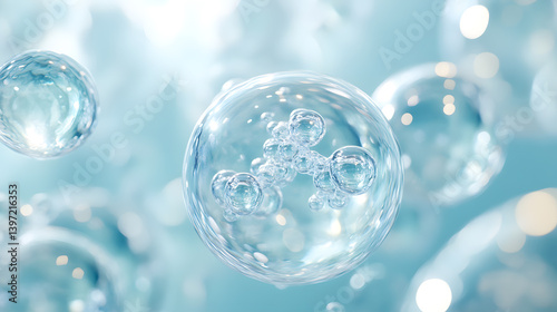Close-up of Transparent Bubbles with Smaller Bubbles Inside