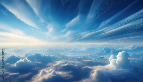 subtle stratus clouds fading into the distant horizon with the ozone layer barely perceptible in the upper sky stratus fading ozone distant atmospheric layers