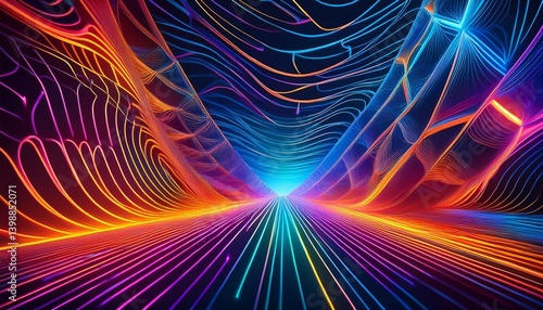 colorful neon web pattern with abstract lines creating a vibrant and futuristic background scene