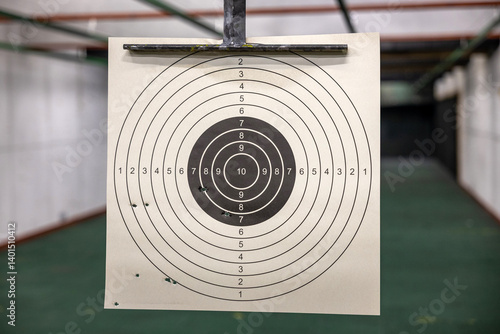 Strzelnica sportowa z tarczami przygotowanymi do strzelania z broni sportowej podczas zawodów z pistoletu.