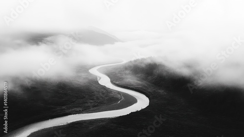 Serpentine River Winding in Black and White