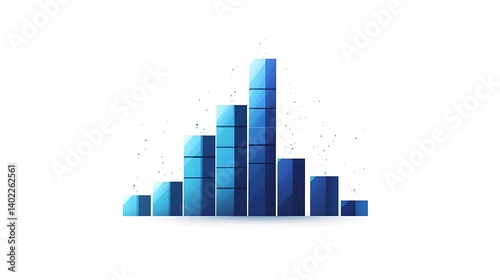 3D Gradient Blue Bar Chart, Abstract 3D bar chart with gradient blue bars on a white background