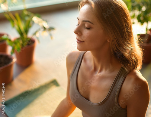 Kobieta praktykująca jogę w pozycji medytacyjnej w domu