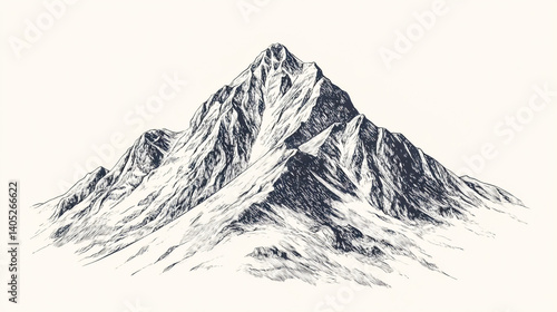 Intricate vintage-style woodcut engraving of a rugged mountain summit, illustrated in retro hand-drawn etching style