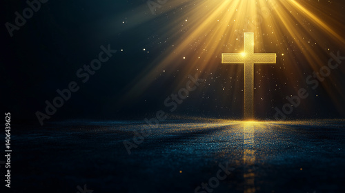 bible verses background, Spiritual themed illustration banner with bible verse about strength and courage, gold and dark blue gradient background with sunrise rays effect, Ai generated images