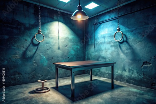 Dark room, stark shadows, glinting handcuffs: a crime scene's chilling interrogation.