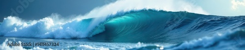 Steep blue wave, whitecaps, dramatic lighting, powerful swell , abstract, color