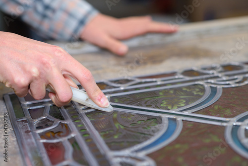 Lady working with stained glass