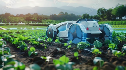Agriculture robotic and autonomous car working in smart farm, Future 5G technology, Generative AI illustrations.