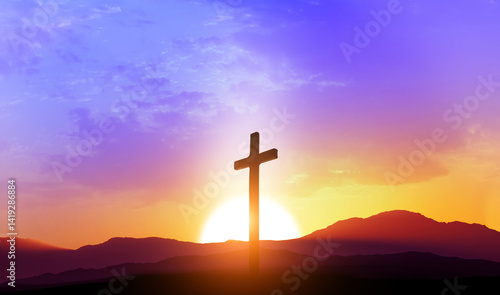 Good Friday concept. Cross on sky background.