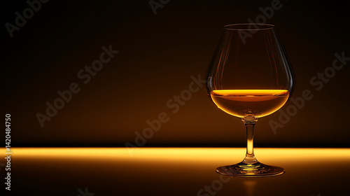 beautifully illuminated glass of amber wine stands elegantly against dark background, showcasing its rich color and clarity. soft backlight enhances warm tones, creating serene and inviting