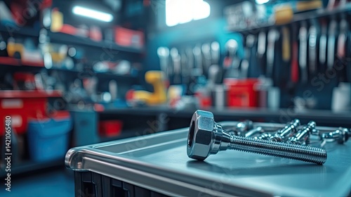 Socket resting firmly on bolt placed in mechanic's tray with other tools nearby