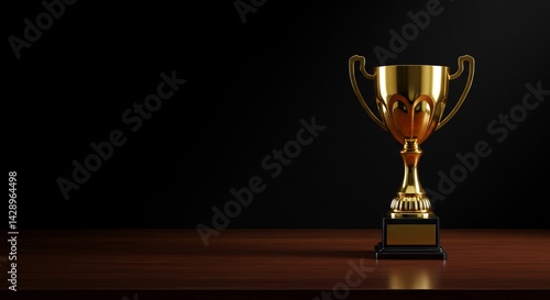 輝く金色の優勝カップ 暗い背景で際立つ高級感