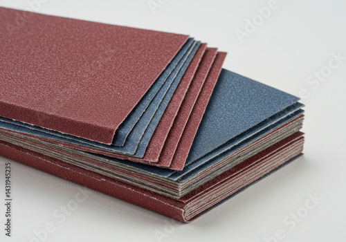 Stack of red and blue sandpaper sheets, arranged in alternating colors.