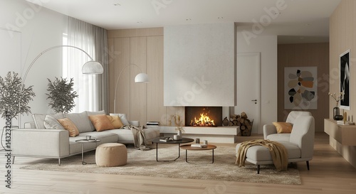 concept related to architectural interior design uncompleted project becomes actual elegant common living space structure burning fuel upholstered seating item soft articles floor covering armless
