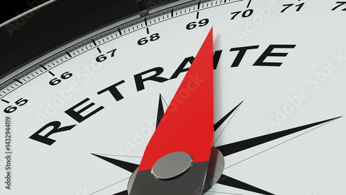 une boussole qui indique l'âge de départ à la retraite - rendu 3D