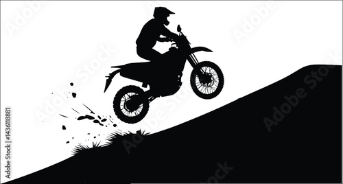 Silhouette Of Dirt Bike Rider Jumping Over Hill Motocross Adventure