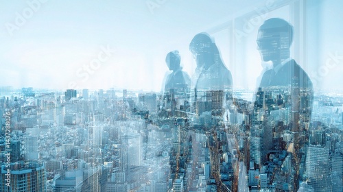 Futuristic Business Environment with Holograms and Layered Views
