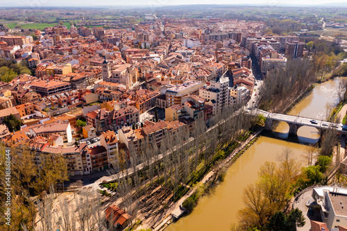 Aerial photo of Aranda de Duero with view of Duero river, Ribera del Duero comarca, Spain.