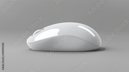 Computer mouse design in white color with a sleek appearance and minimalistic style on a gray background