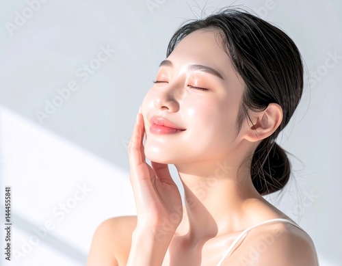 透明感あふれる美しい素肌の笑顔の若い日本人女性 beautiful young woman