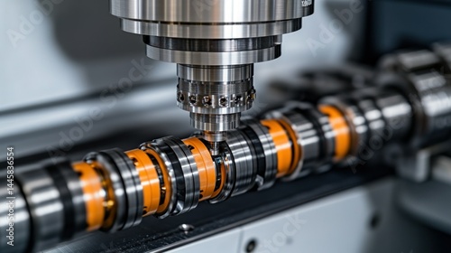 Precision machining of engine components. Close-up of a machine tool working on a series of engine parts