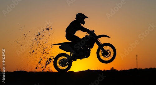 Motocross rider silhouette at sunset
