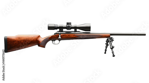 A sniper rifle with a telescopic sight. A carbine with a wooden stock. Weapons for hunting and sports isolate on a white background. AI Generated Images