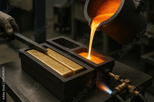 Gold Refining: Molten Gold Being Poured into Ingots