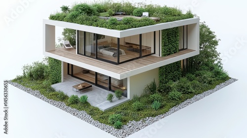 Modern sustainable architecture showcasing a house model with gr