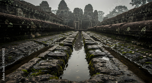 Ancient Stone Temple Reflection In Water Angkor Cambodia Southeast Asia