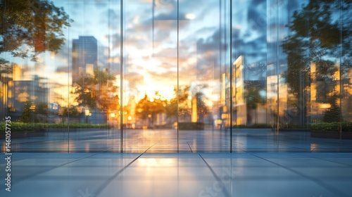 A motion-blurred cityscape seen through a reflective glass panel, the bokeh effect creating depth and a futuristic feel, perfect for a real estate vision