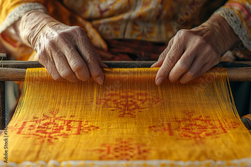 Rural arabian asian bazaar market Artisan sell Crafting Traditional Handmade cloth With Intricate Gold Beadwork Generative AI