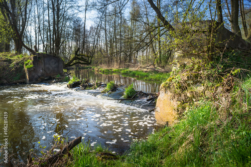 Próg wodny, pozostałość młyna wodnego ana Drzewiczce, Nieznamierowice, Polska