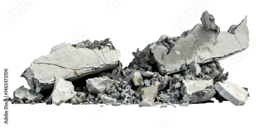 Concrete fragments of a destroyed building isolate on transparent background