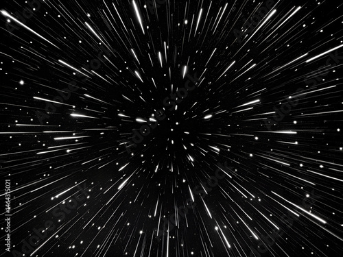3D hyperspace background with warp tunnel effect. A starry sky with a bright light in the middle. The stars are scattered all over the sky, creating a sense of movement and energy.
