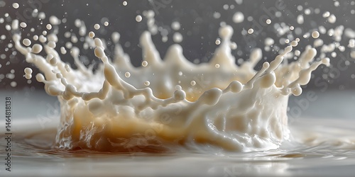 High-speed photo of a milk splash forming a crown shape, droplets frozen mid-air against a clean white background.
