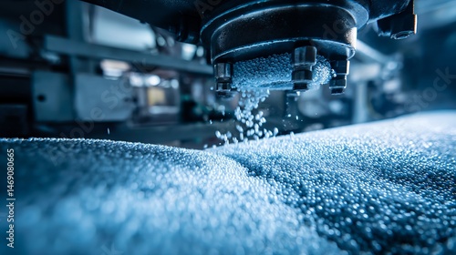 Industrial Plastic Pellets Production Process Close Up Detailed View Manufacturing Machine Granules Blue Polymer Industry Technology Modern Factory