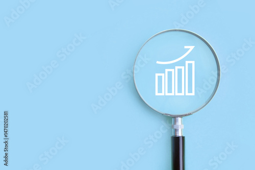 Magnifying glass with growth graph; Analytic information trend, Business forecasting for success