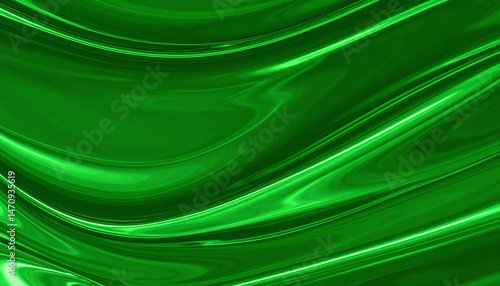 光沢をまとった緑の流体が描く幻想的な曲線美 深く鮮やかなエメラルドグリーンの液体 抽象的なデジタルアート
