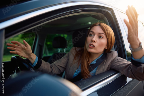 Mid adult businesswoman feeling stressed due to traffic jam.